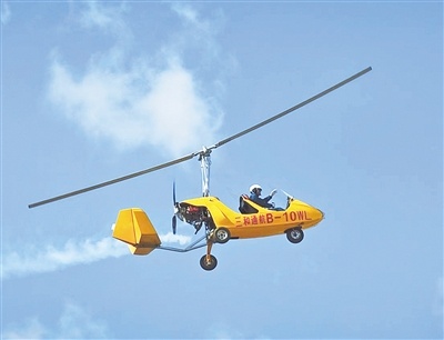 河南三和航空工業有限公司自主研發的自轉旋翼機進行空中表演 鄭州通航試驗區管委會供圖